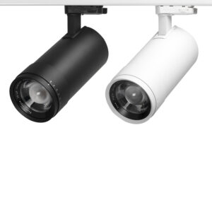 Foco de carril elegante y moderna con acabado en blanco de serie, negro mediante solicitud especial, opción sin coste. La luz sobre riel Zoom es una luminaria increíblemente ajustable que se adapta a cualquier entorno.