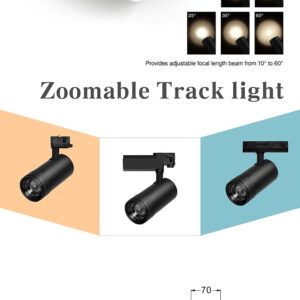 Otra gran característica de esta luz es el ángulo de haz ajustable, variable entre 10 y 60 grados. Viene completo como una unidad trifásica que le permite controlarlo individualmente, permitiéndole encenderlo y apagarlo por separado, conectado a un riel existente.