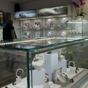 Este foco LED brillante ilumina tus joyas con una luz enfocada. Diseñado para instalación vertical, su cabezal ajustable permite cambiar fácilmente la dirección de la luz.